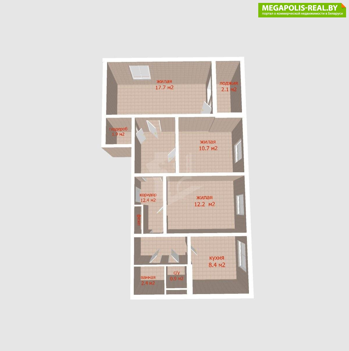 - три изолированные комнаты 17.7, 12.2 и 10.7 кв.м;