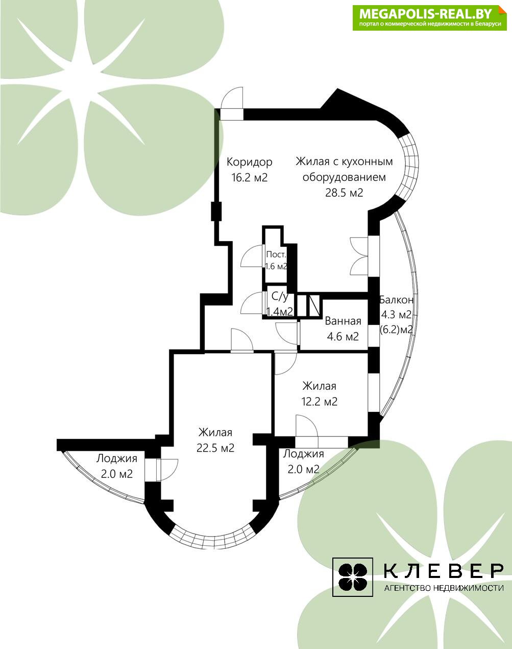 · две отдельные спальни 12.2 м2 и 22.5 м2 с выходами на застекленные теплые лоджии и балкон