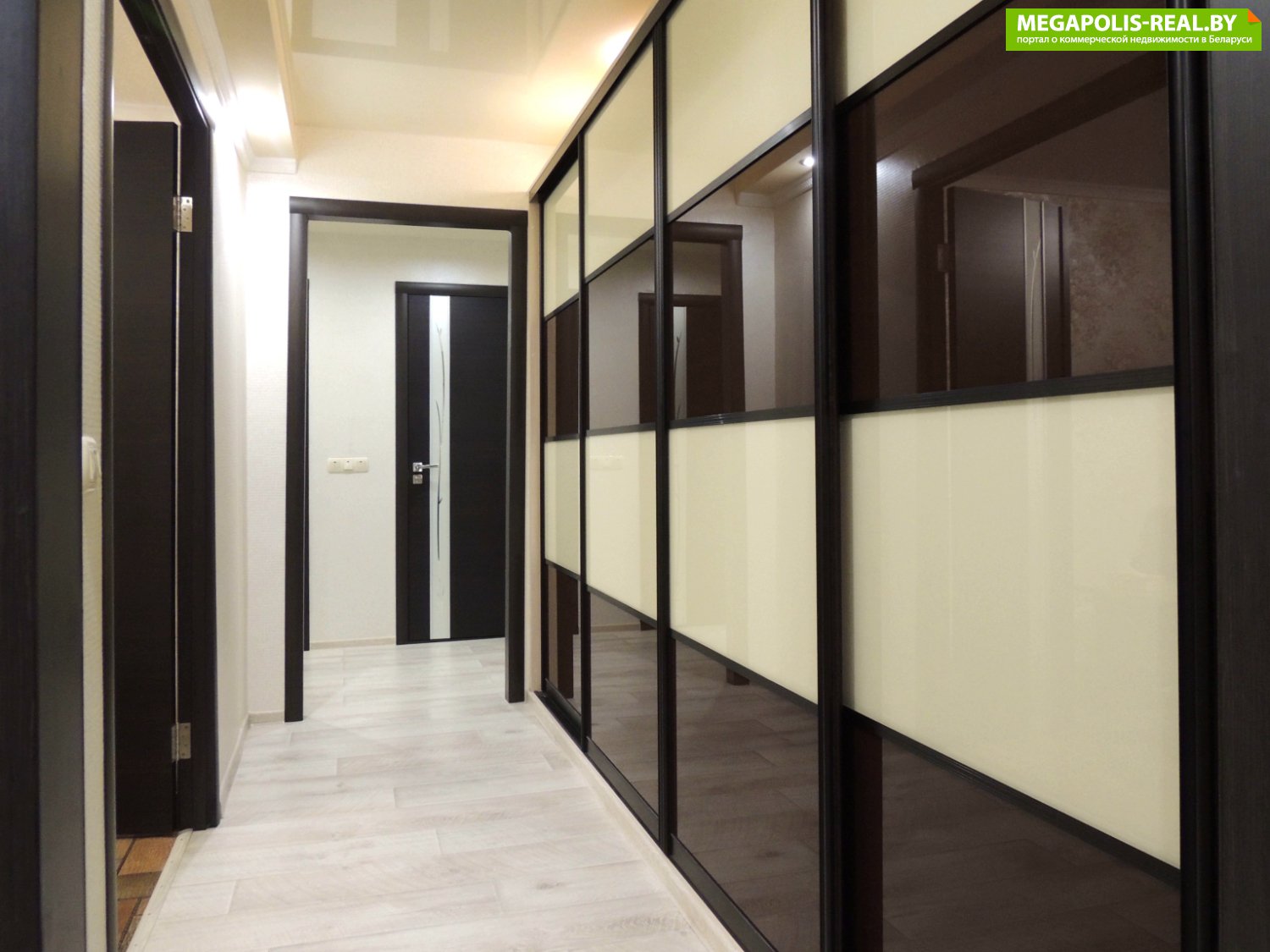 Новая встроенная кухня, которая остается при продаже. Большой вместительный шкаф-купе в коридоре.