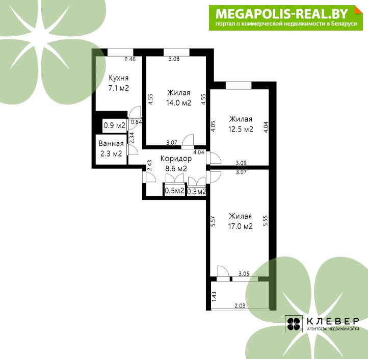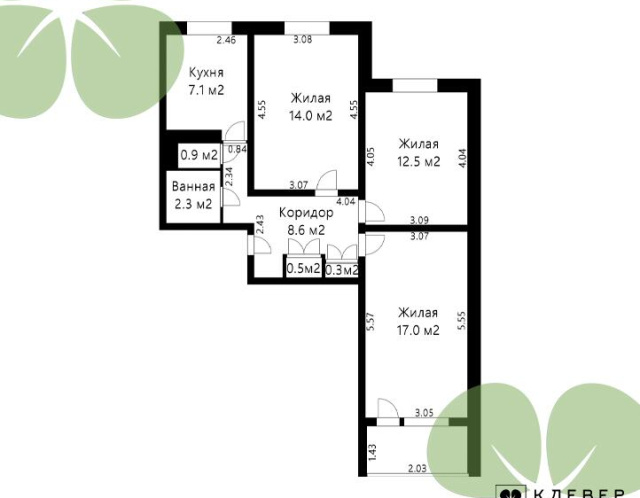 - Количество комнат: трехкомнатная