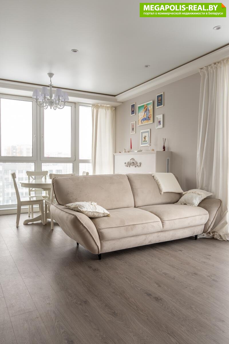 Квартира находится в квартале «Евразия», в сердце жилого комплекса Минск Мир, в престижном 21-этажном доме «Москва».