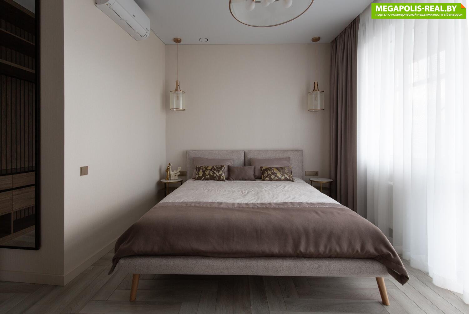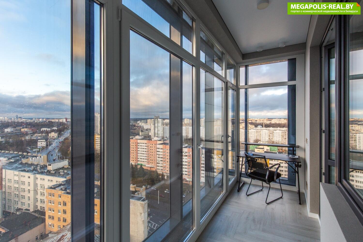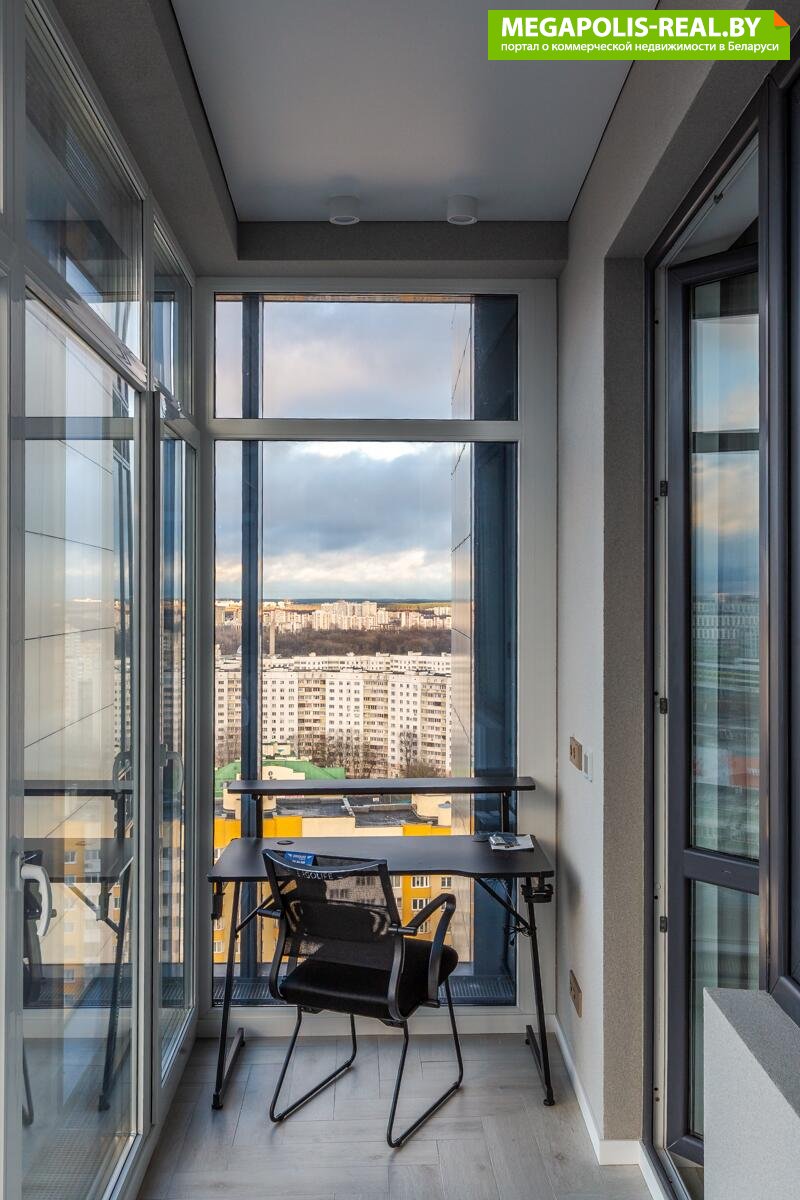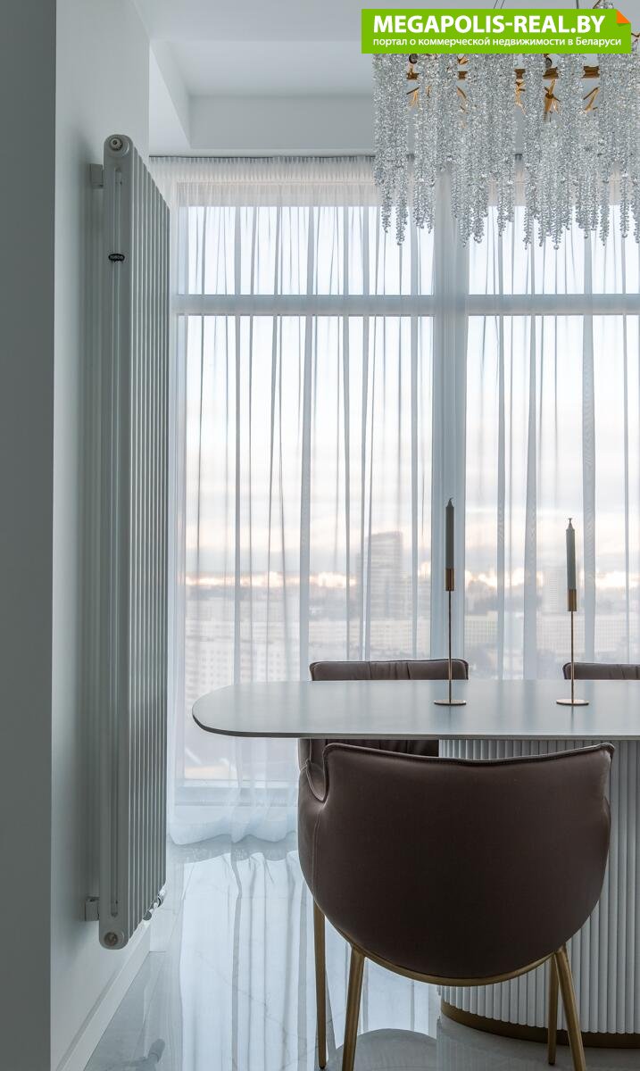 Панорамные окна в пол с захватывающим видом на центр Минска. Восхитительные рассветы из гостиной с кухней и живописные закаты в спальне.