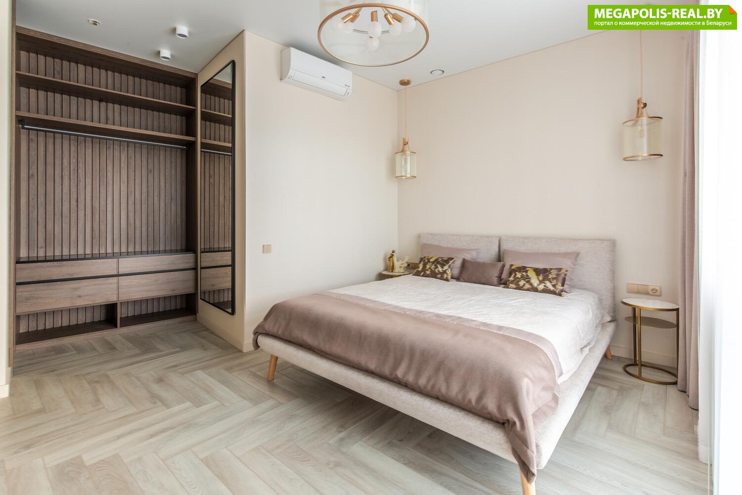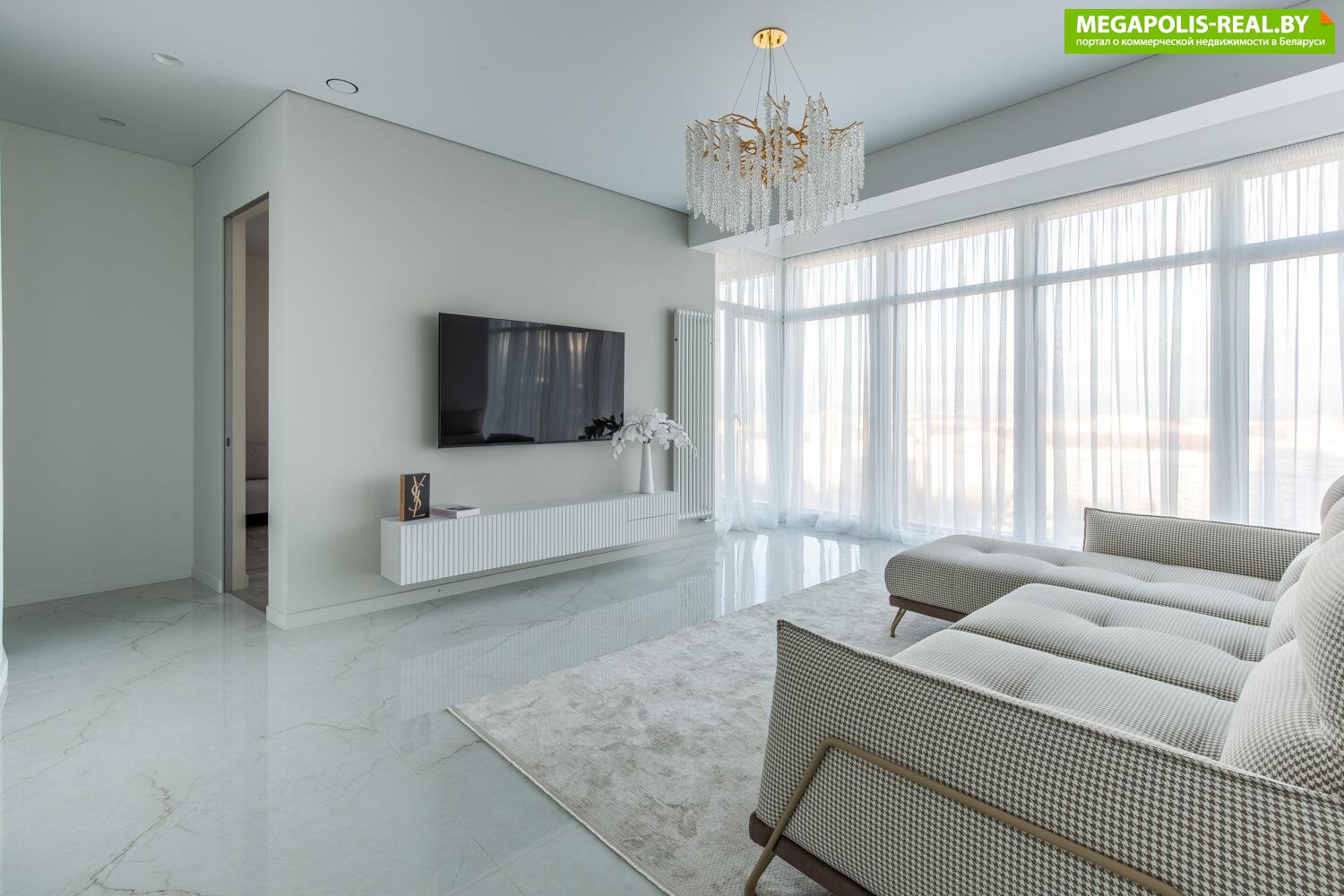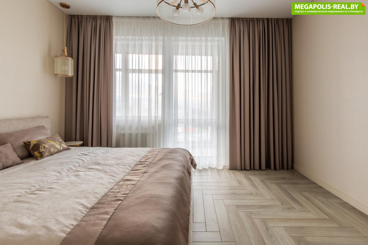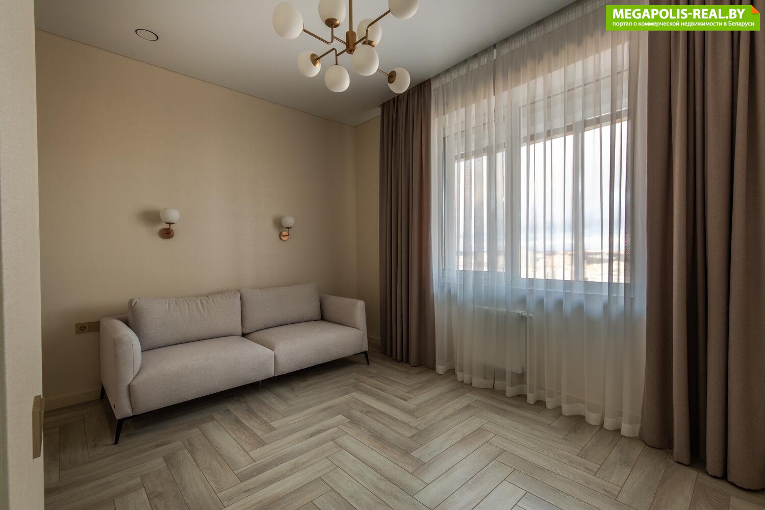 Панорамные окна в пол с захватывающим видом на центр Минска. Восхитительные рассветы из гостиной с кухней и живописные закаты в спальне.