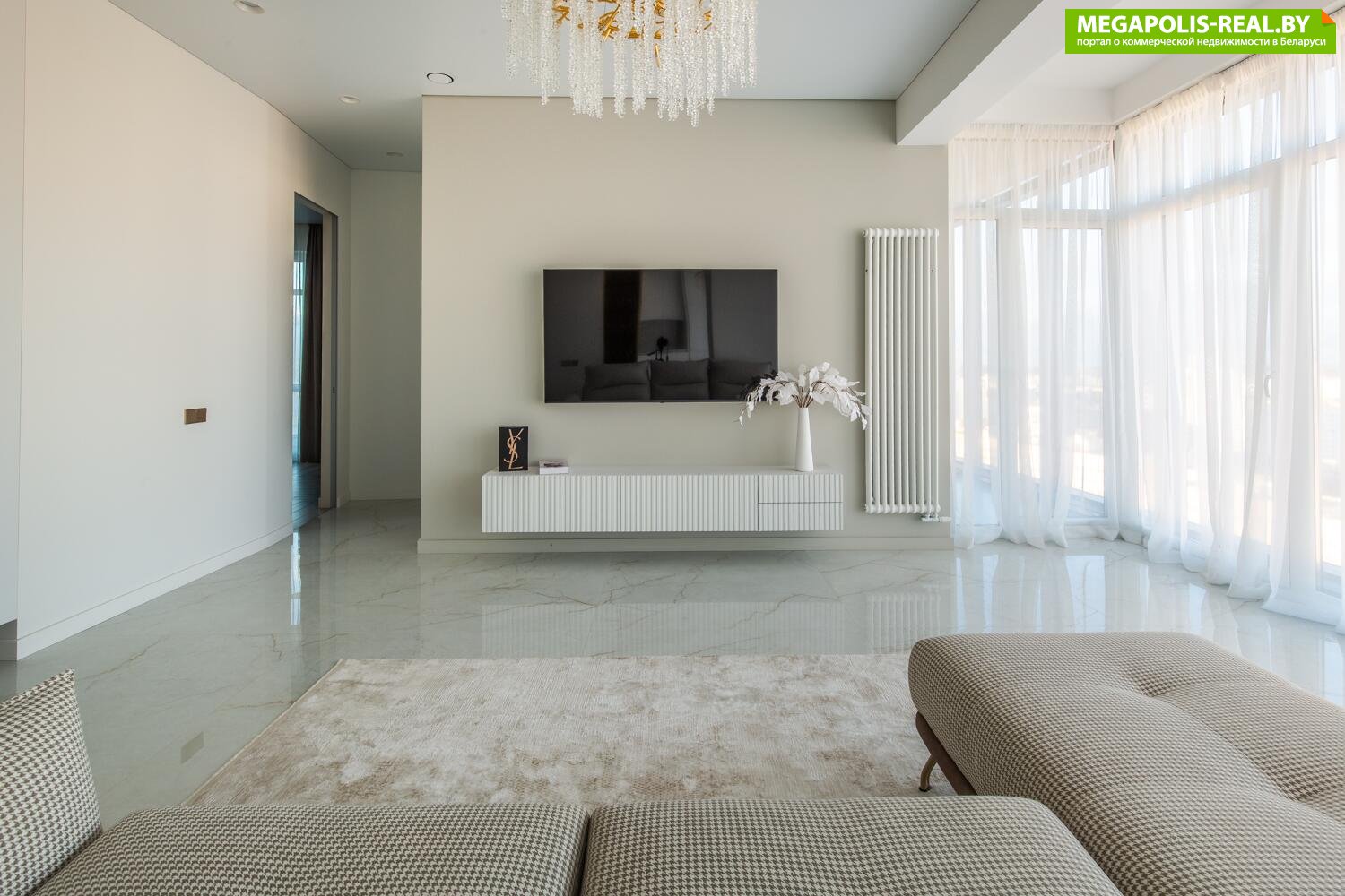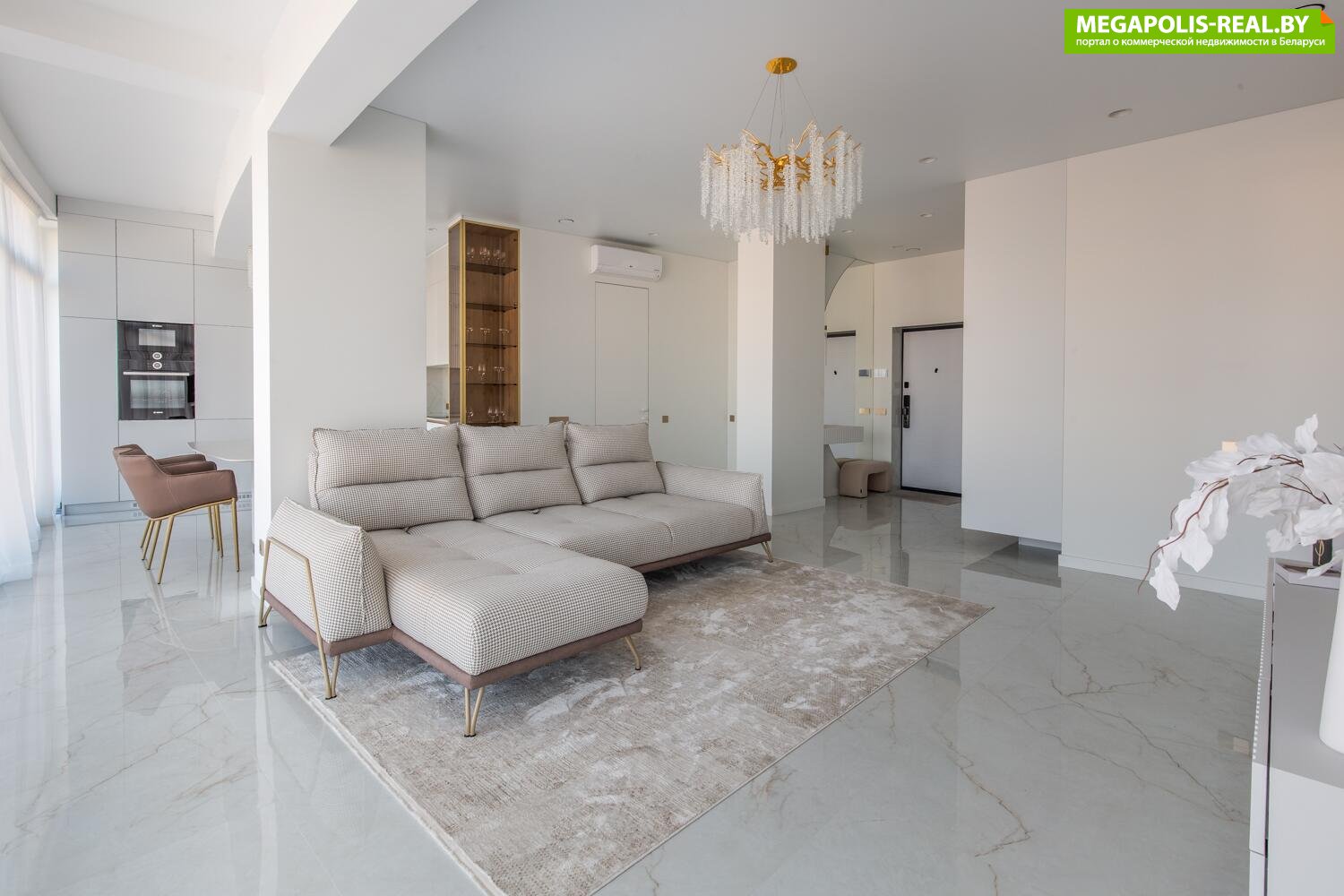 Пространство квартиры составляет 100.1 м2, оформлено с элегантным вкусом и вниманием к деталям.