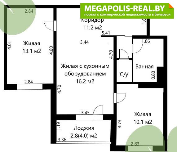 · две отдельные спальни 13,1 м2 и 10.1 м2