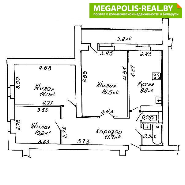 - Количество комнат: трехкомнатная