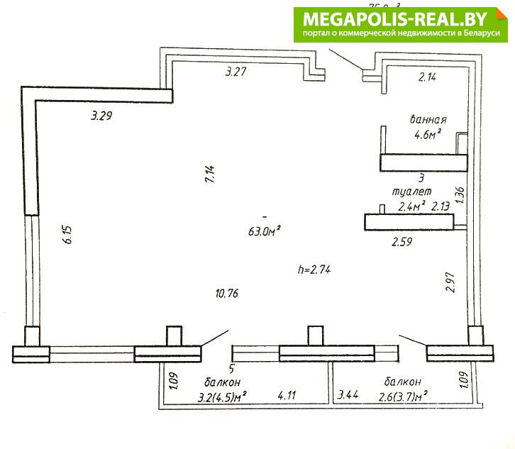 Общая площадь указана по СНБ.