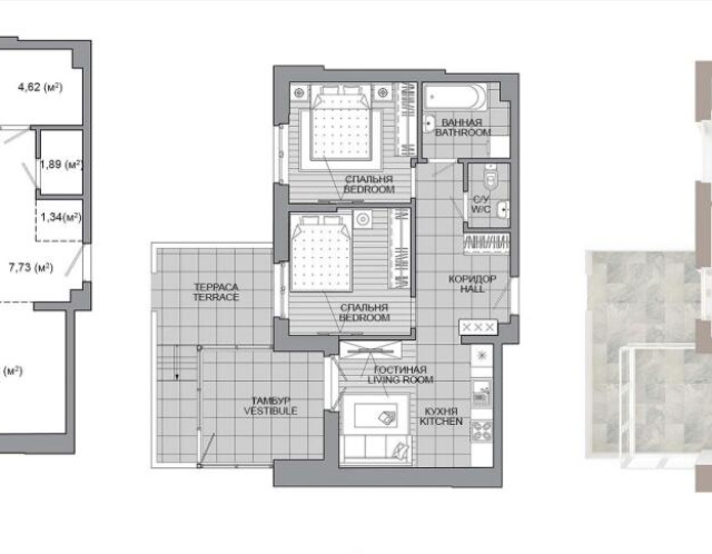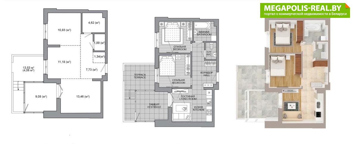 - Количество комнат: трехкомнатная