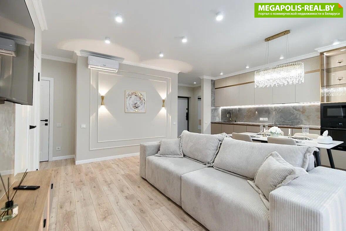 Просторная трехкомнатная квартира с дизайнерским ремонтом, мебелью и техникой.