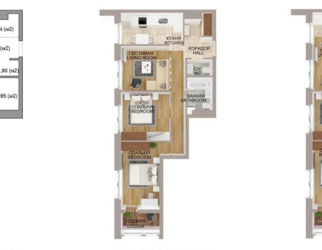 - Количество комнат: трехкомнатная