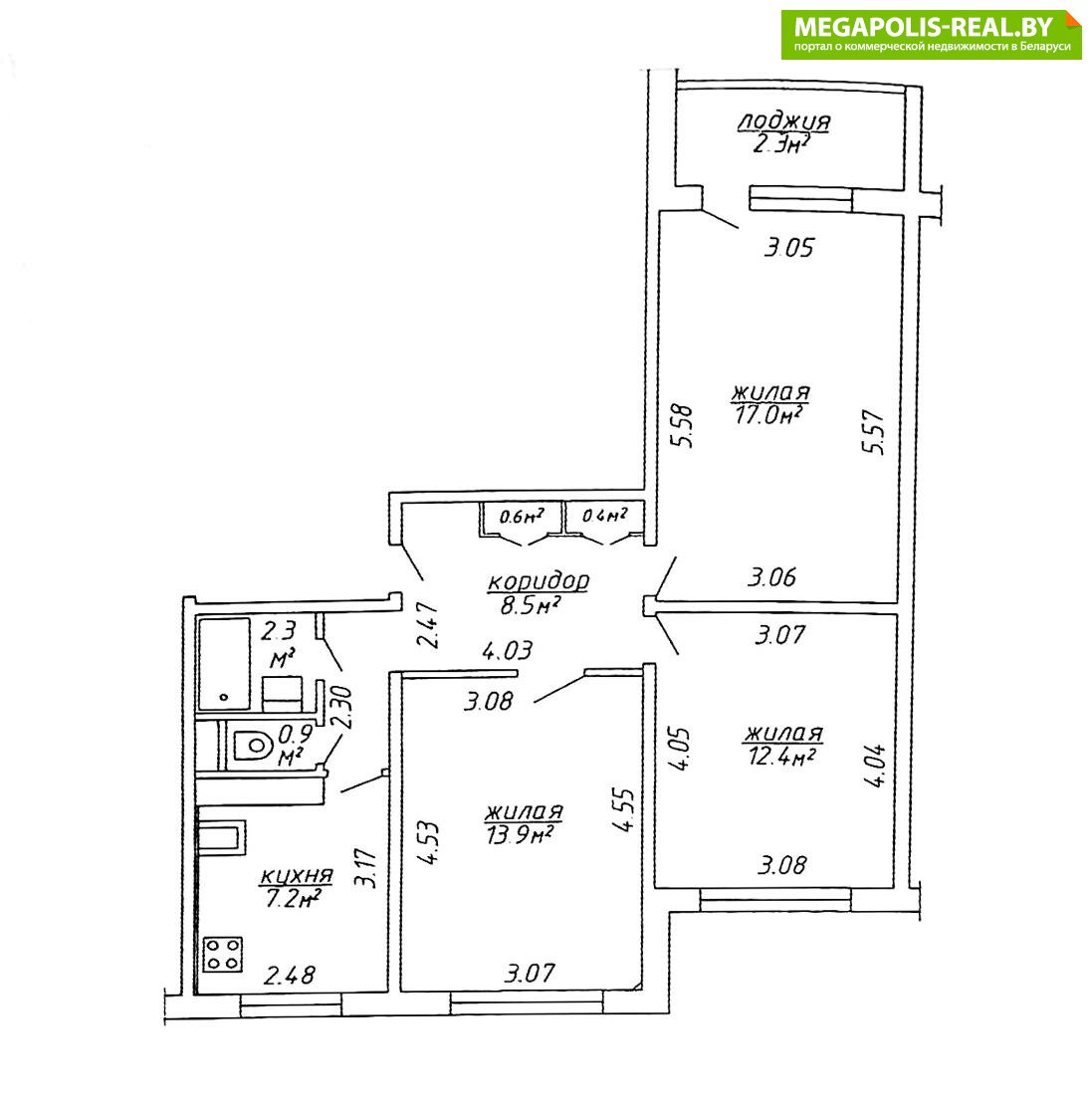 - Количество комнат: трехкомнатная