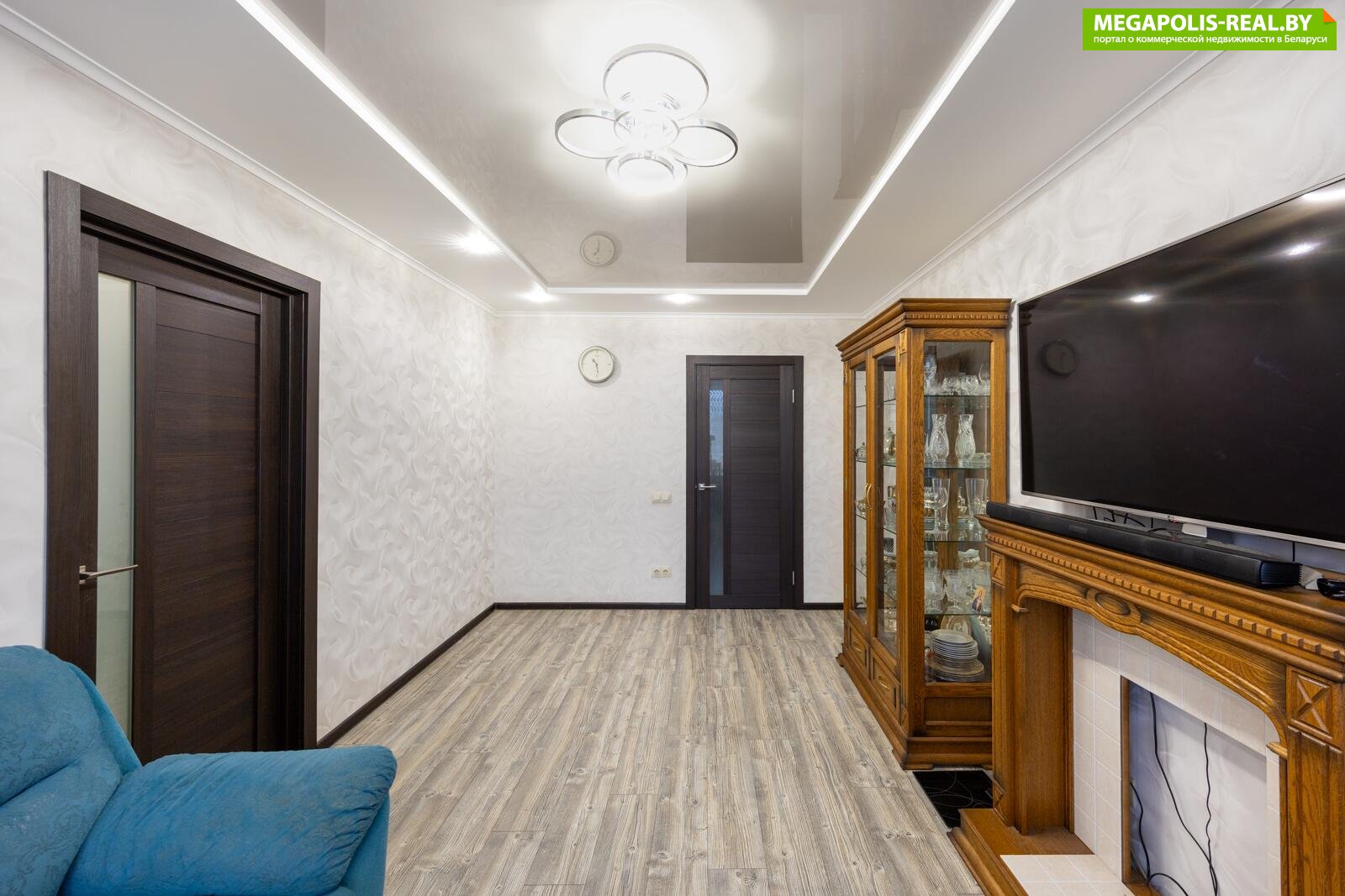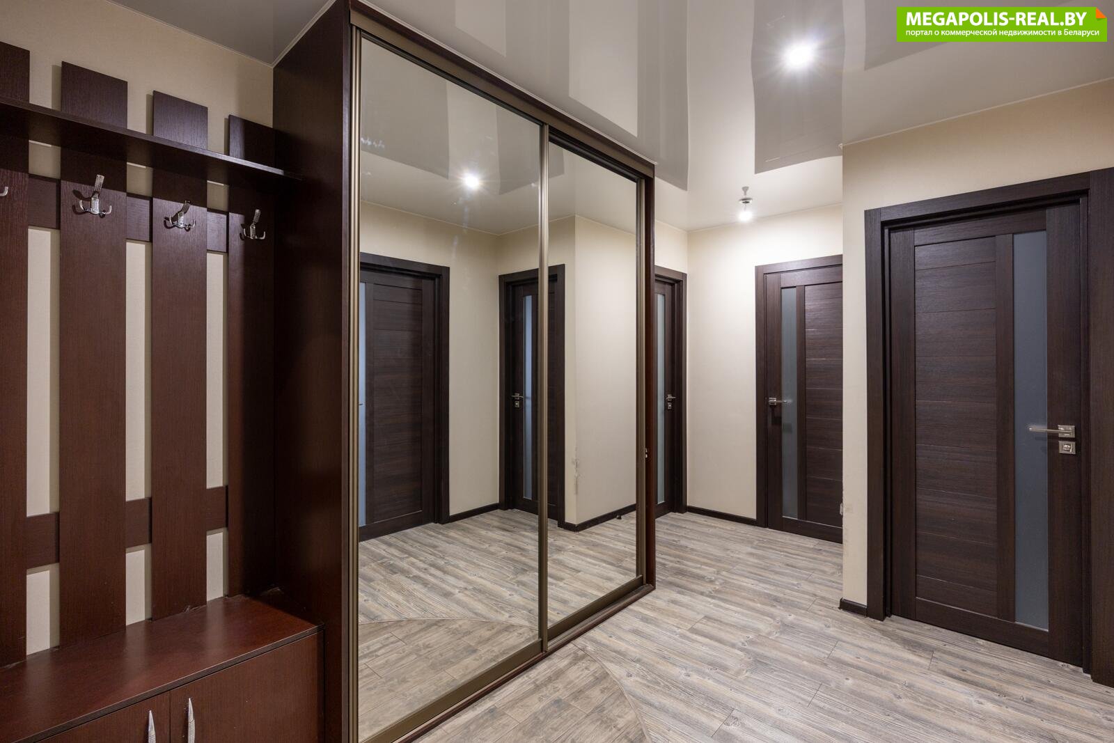 · Прихожая встречает вас не только уютом, но и порядком: здесь вас ждет огромный встроенный шкаф, а также отдельная гардеробная комната — мечта для ценителей организованного хранения.