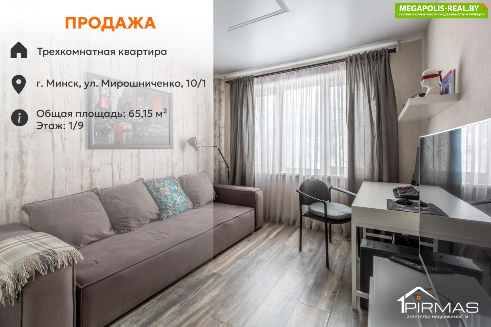 ✅К продаже предлагается просторная трёхкомнатная квартира площадью 65,15 кв.м в экологически чистом районе Минска по ул. Мирошниченко, 10/1. Высокий первый этаж девятиэтажного дома. Формат «заходи — и живи»: выполнен ремонт, квартира полностью меблирована, установлена сигнализация. Удобная планировка, светлые комнаты и развитая инфраструктура делают этот вариант практичным решением.