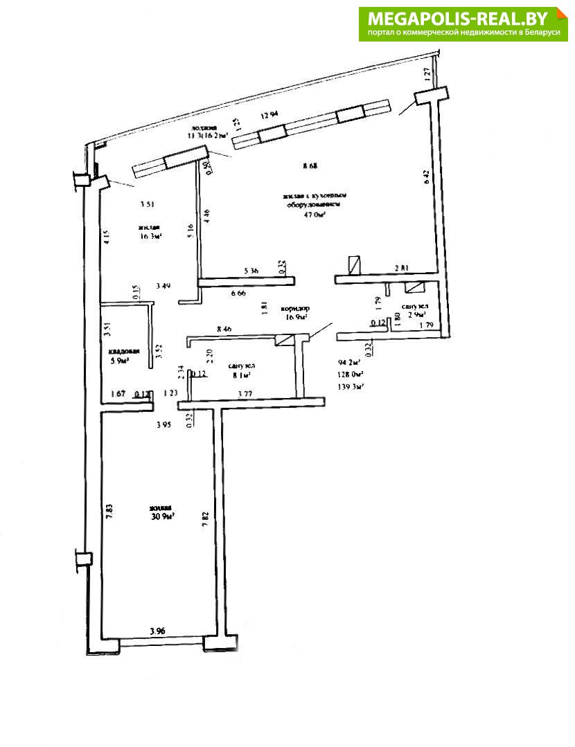 Площадь указана по СНБ.