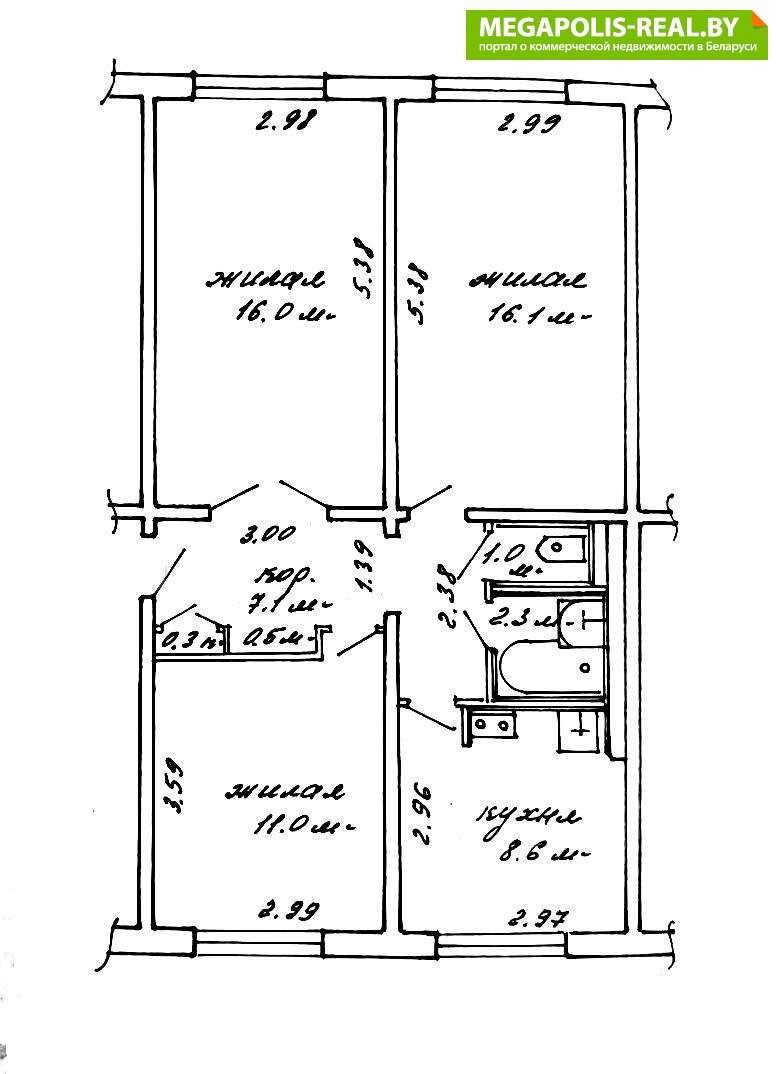 - Количество комнат: трехкомнатная