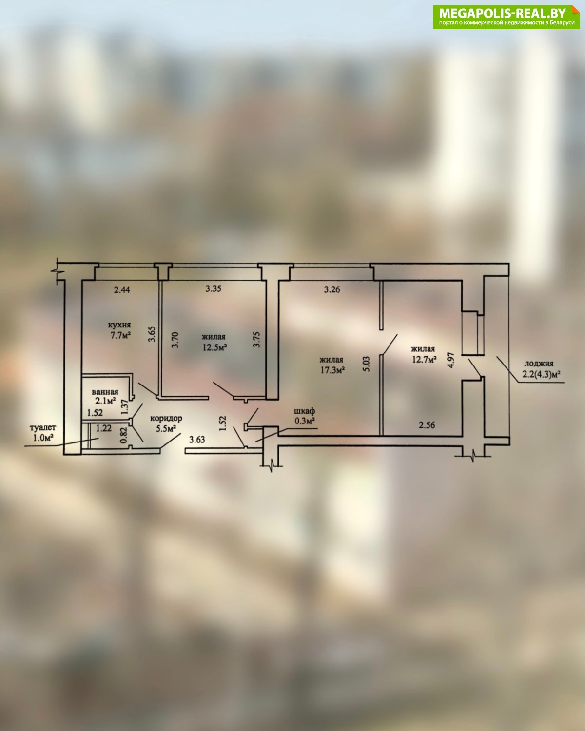 - Общая площадь 59,1 м2, по СНБ 61,3 м2