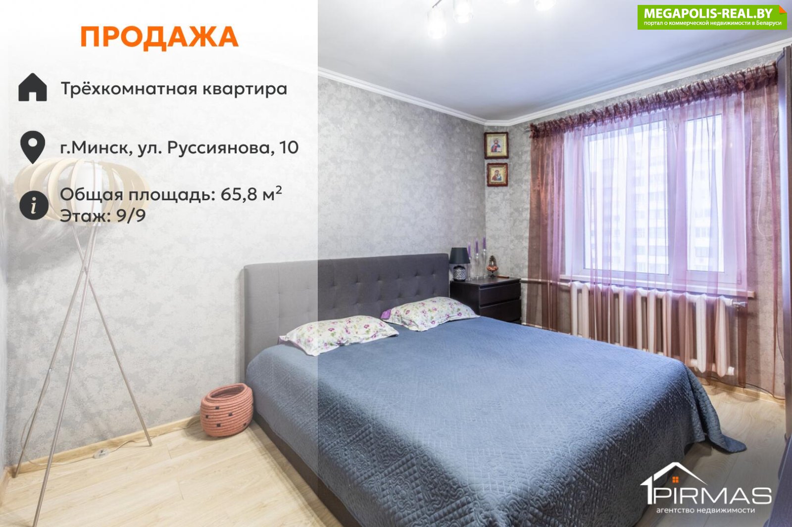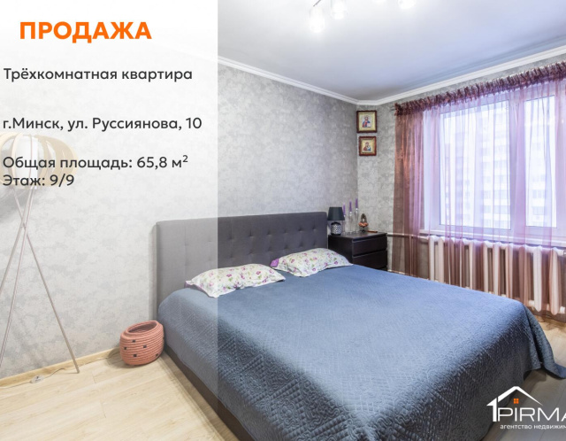 ✅ Предлагается к продаже трёхкомнатная квартира в Первомайском районе г. Минска, по адресу ул. Руссиянова, 10. Это вариант для тех, кто ищет готовое жильё рядом с метро, в тихом зелёном районе, с удобной планировкой и полностью сформированной инфраструктурой для жизни семьи.