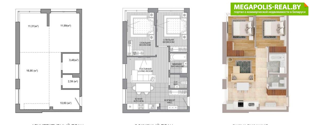 - Количество комнат: трехкомнатная
