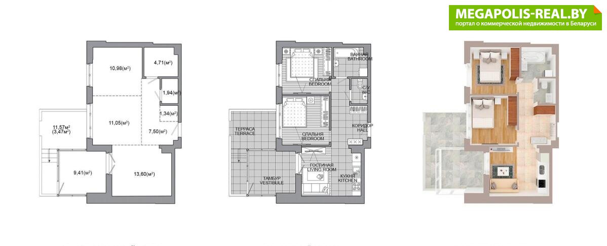 - Количество комнат: трехкомнатная