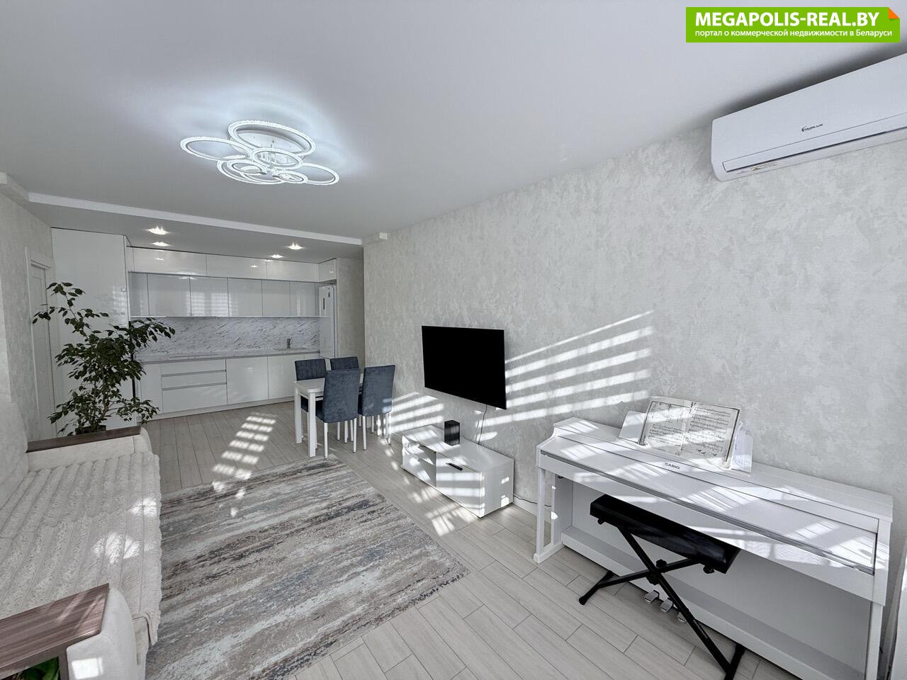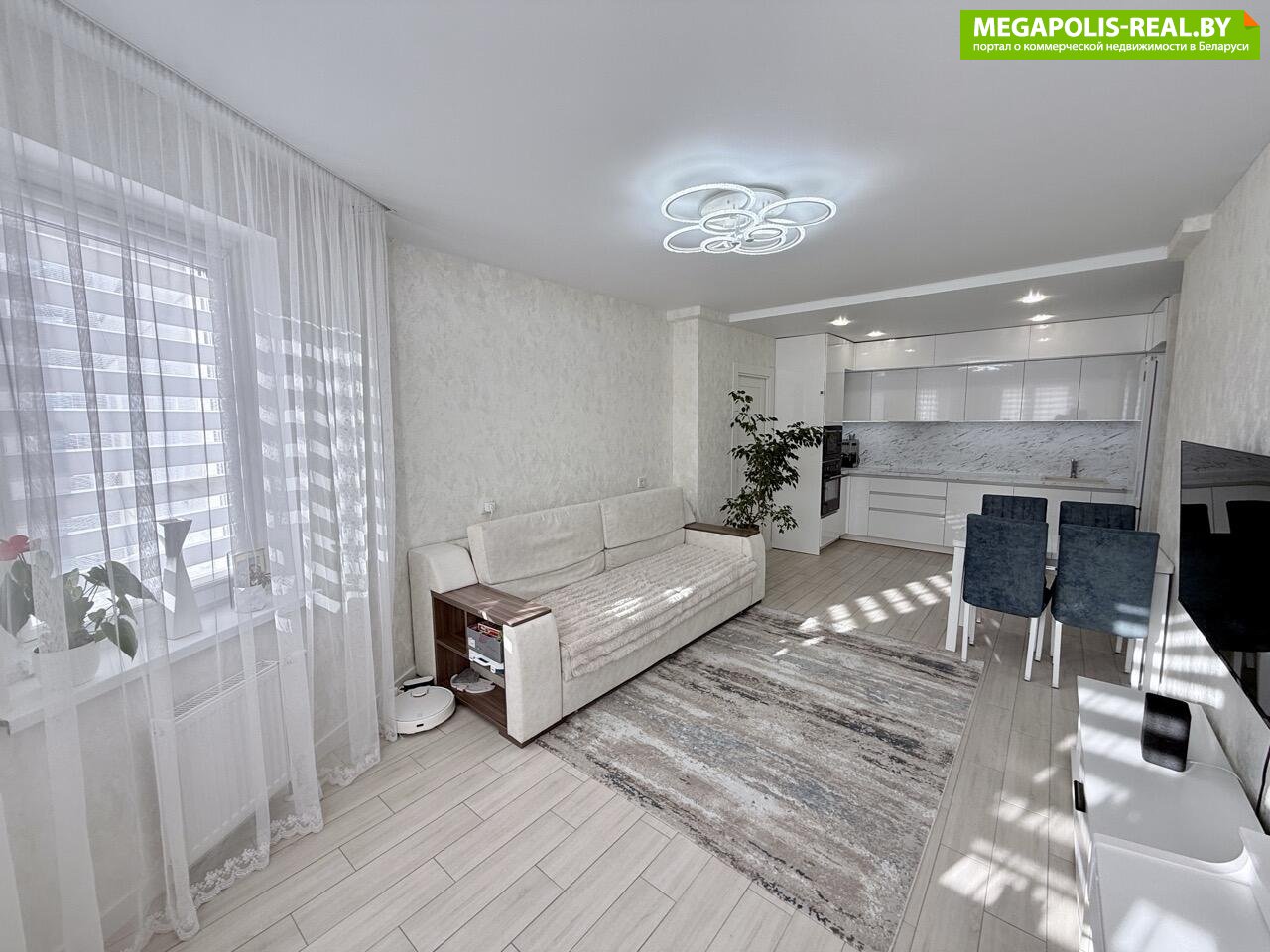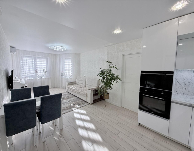 Просторная квартира с грамотной планировкой. Кухня-гостиная 24.4м2 и две отдельные комнаты по 12 и 12.8 метров.