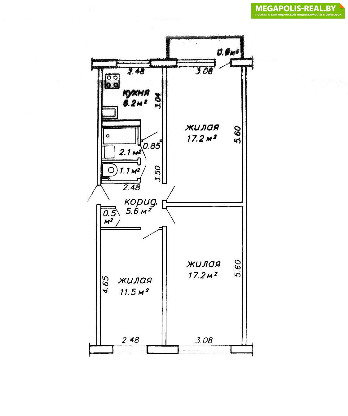 Площадь указана по СНБ.
