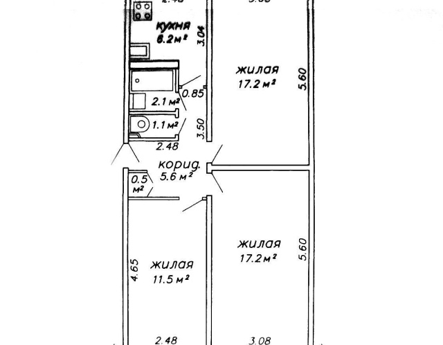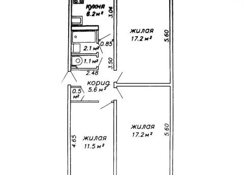 - Количество комнат: трехкомнатная
