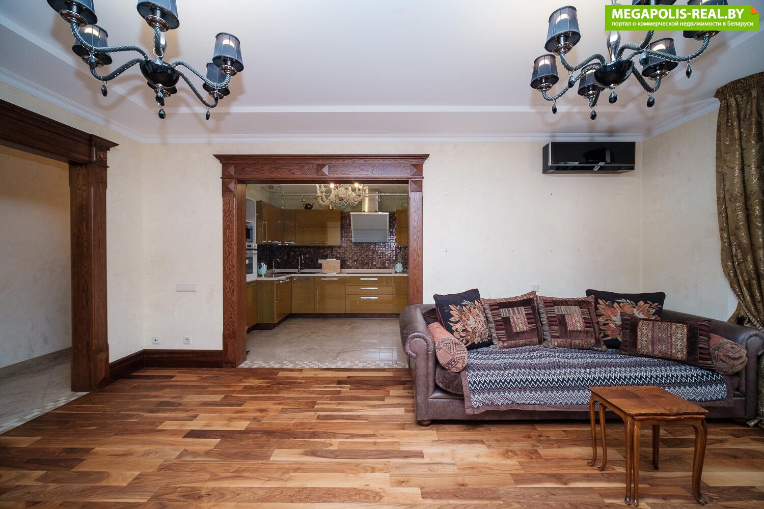 полы с подогревом, паркетная доска - в комнатах, а в прихожей, кухне и сан/узлах - плитка; потолки из гипсокартона; премиальный кухонный гарнитур, дорогая бытовая техника: варочная панель, духовой шкаф, посудомоечная машина, холодильник, вытяжка, печь СВЧ, а также стиральная и сушильная машины в квартире установлены 2 кондиционера для поддержания комфортной температуры в любое время года, а также есть бойлер видеодомофон для повышенной безопасности установлена импортная сантехника известных мировых брендов Квартира находится в районе с развитой инфраструктурой и отличным транспортным сообщением.Рядом парк Дружбы Народов, Киевский сквер, парк Победы. В будущем будет расположена станция третьей линии Минского метрополитена.