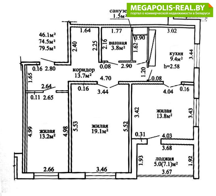 Общая площадь указана по СНБ.