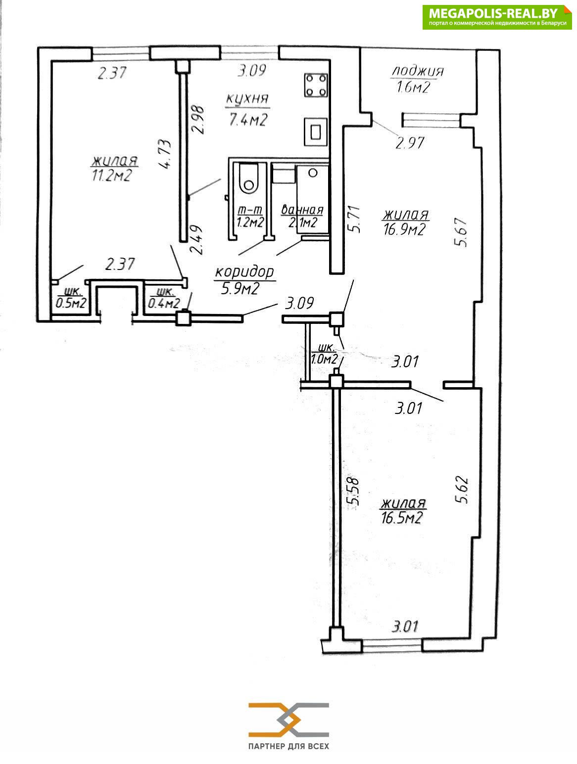 Продаётся светлая и тёплая 3-комнатная квартира в доме, расположенном в одном из самых зелёных мест Советского района с артезианским водоснабжением. В доме был произведён капитальный ремонт в 2012 году с заменой основных коммуникаций (водоснабжение, газоснабжение, теплоснабжение), утеплён фасад дома.В квартире комнаты 16.9, 16.5 и 11.2 м.кв. расположены на разные стороны, окна выходят в основном во двор с видом на зелёную зону и детский садик. Окна стеклопакеты, в санузлах кафель и плитка, в кухне - кухонная мебель и встроенная кухня. Чистый подъезд, тихие соседи. В 5-ти минутах ходьбы находится Парк Дружбы народов (популярное место отдыха и проведения мероприятий) и площадь Банголор.Развитая инфраструктура: от пл. Банголор можно добраться на транспорте во все районы г. Минска, а в ближайшем будущем и на метро, строительство которого планируется завершить 2028-2029г.г. В настоящее время до станции метро Академия наук - три остановки.Также рядом есть всё необходимое для комфортной жизни: детские сады, две гимназии, торговые центры Европа и Рига, банки, почта, магазины Соседи, Светофор, Грошык и другие. До Комаровкого рынка - 15 мин.пешком.Торг.
