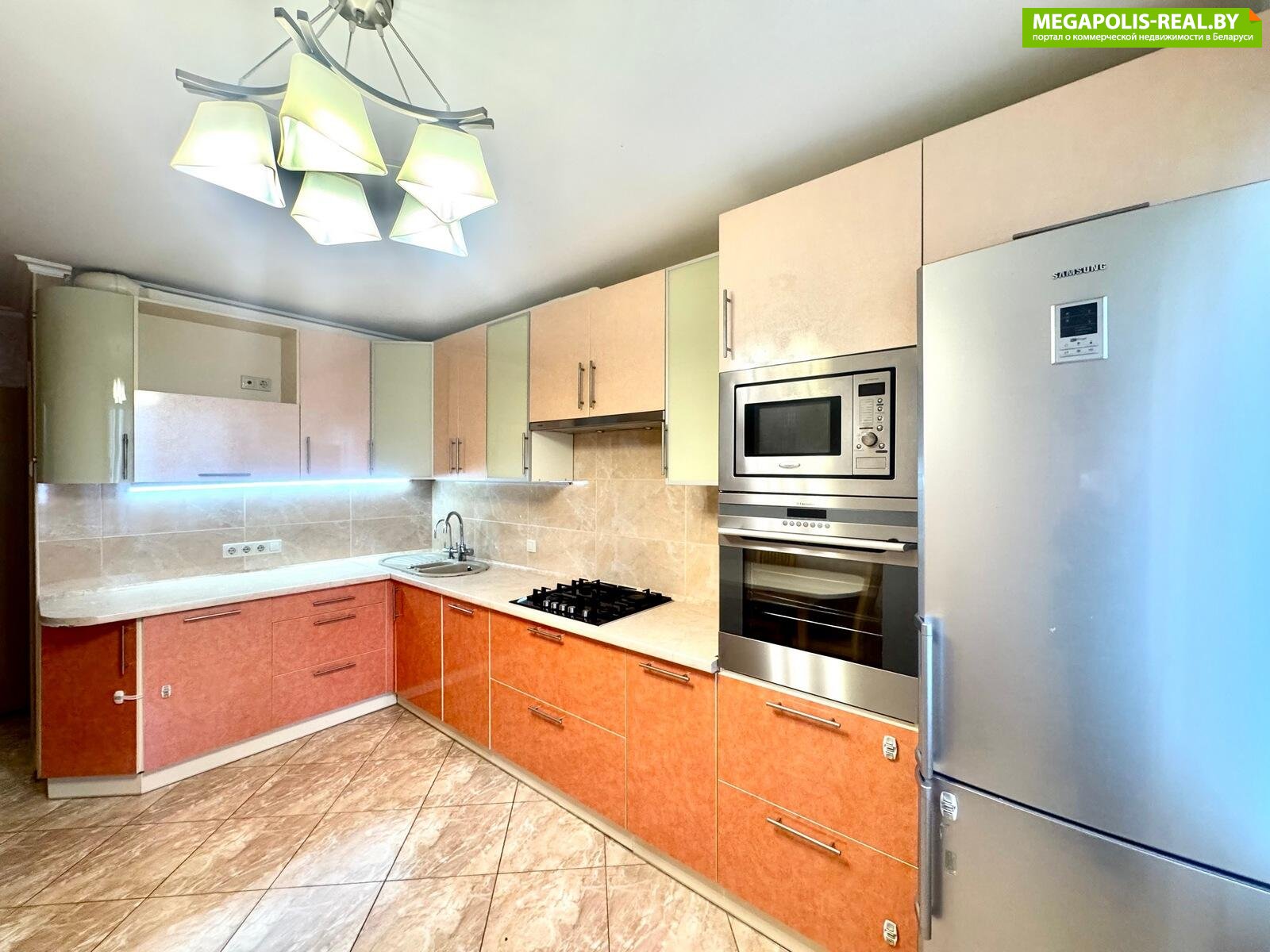 На кухне пол с подогревом (терморегулятор) - итальянская плитка. Кухонный гарнитур итальянского производителя с импортной встроенной техникой: