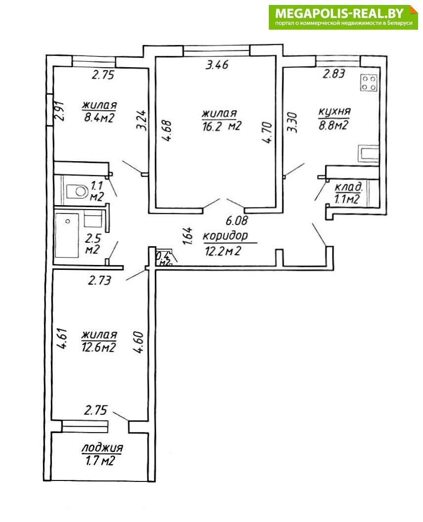 - Количество комнат: трехкомнатная