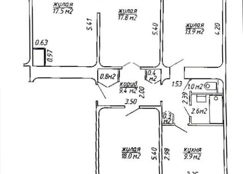 - Количество комнат: четырехкомнатная