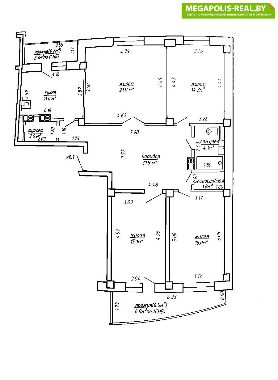 Площадь указана по СНБ.