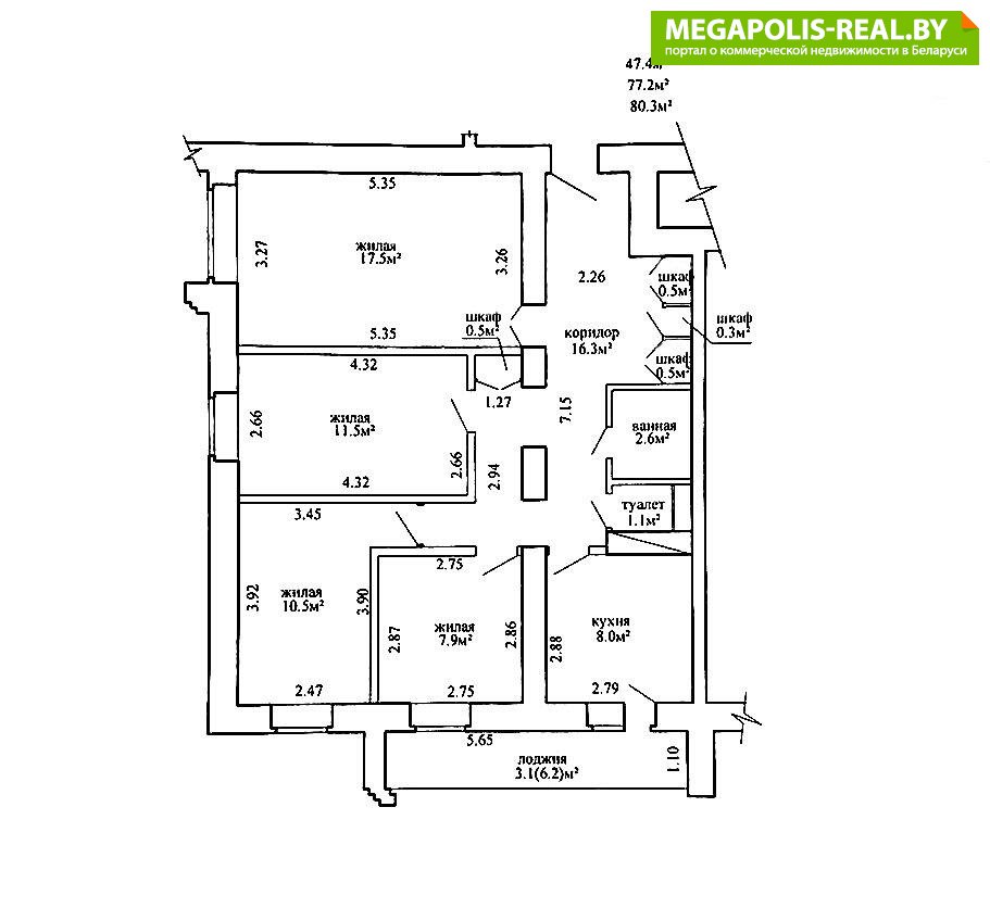 - Количество комнат: четырехкомнатная