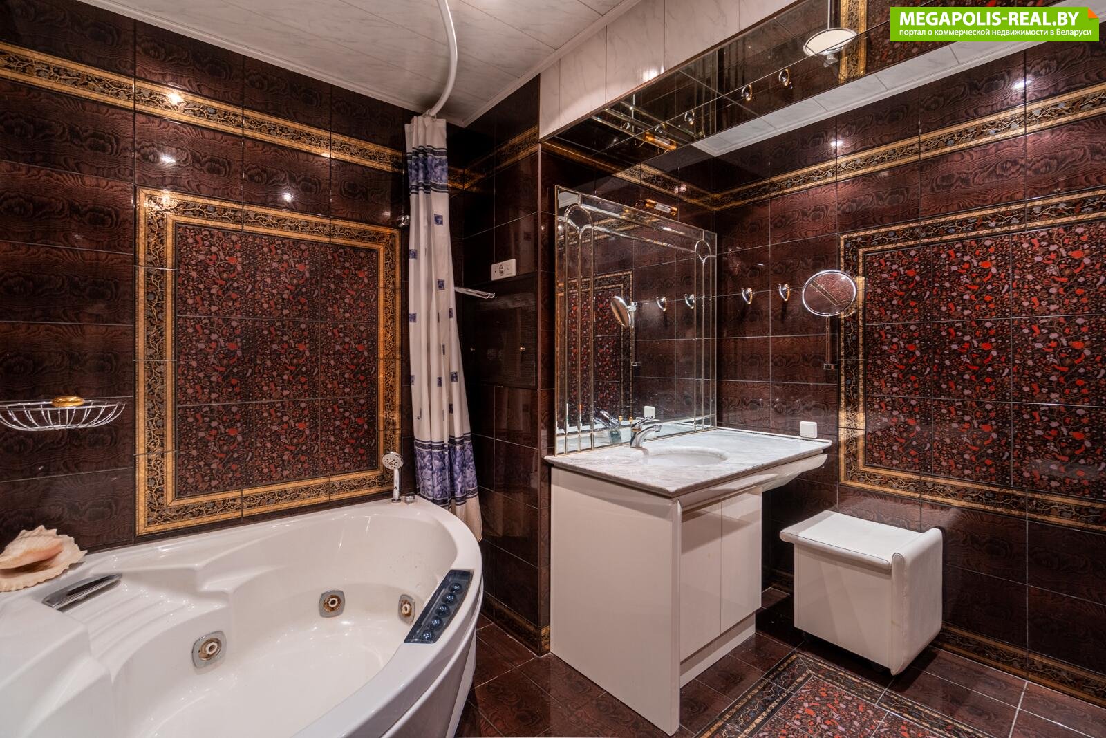 во втором установлено джакузи (Италия), отделка итальянской дизайнерской плиткой (Valentino) с сусальным золотом, металлические аксессуары с позолотой - вы не останетесь равнодушны, это очень красиво