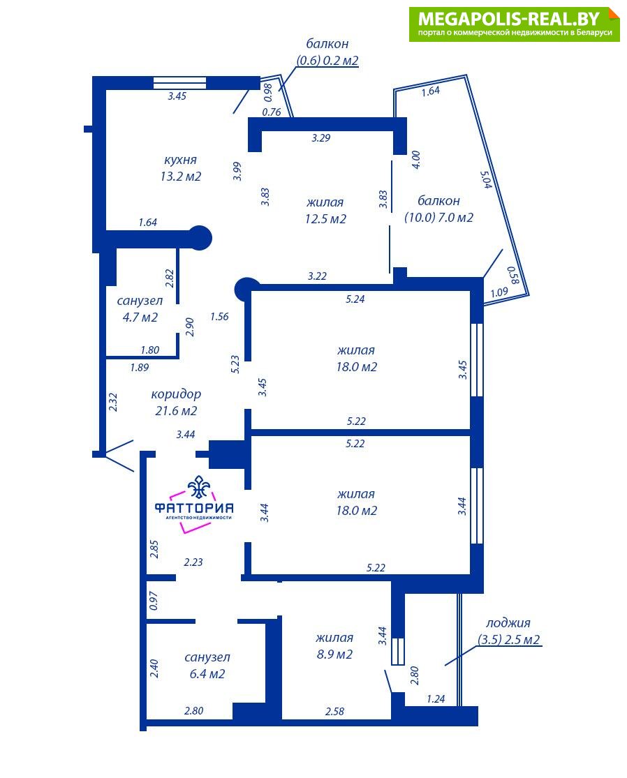 - Количество комнат: четырехкомнатная