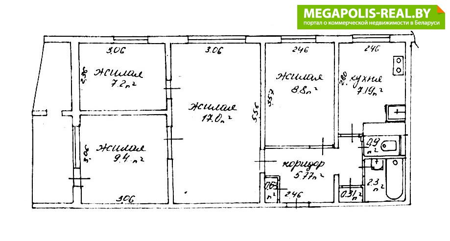 - Количество комнат: четырехкомнатная