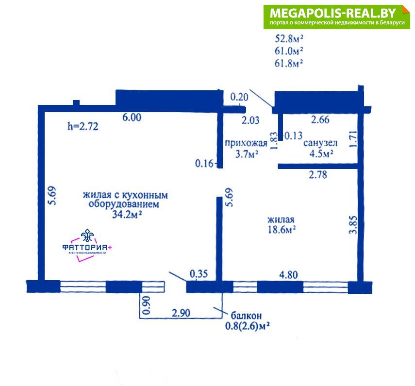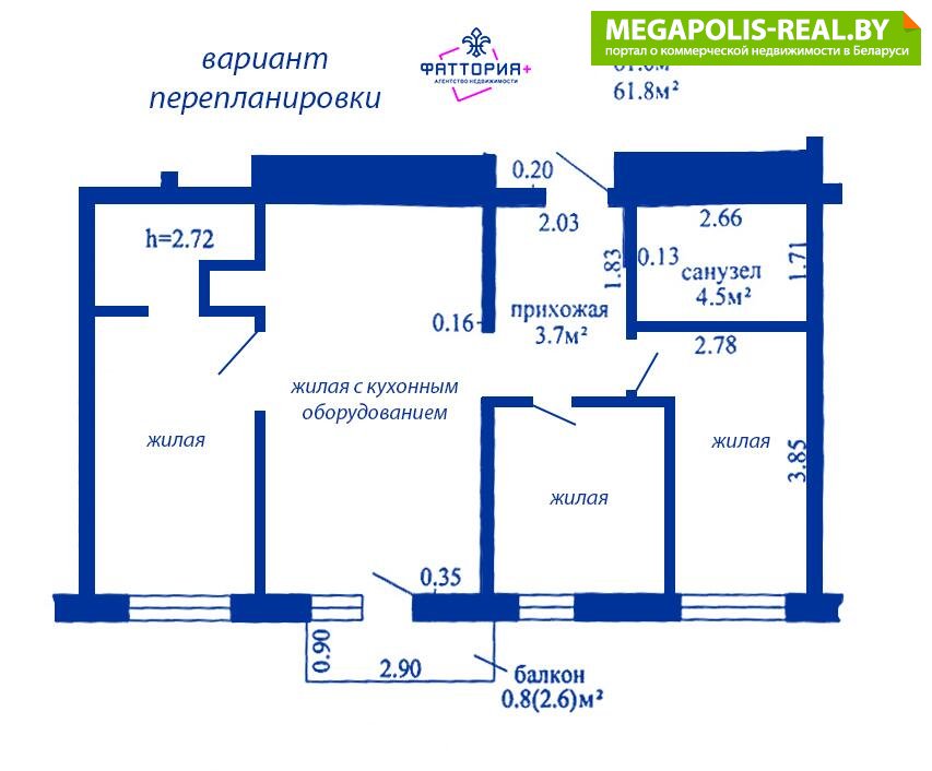 - Количество комнат: четырехкомнатная