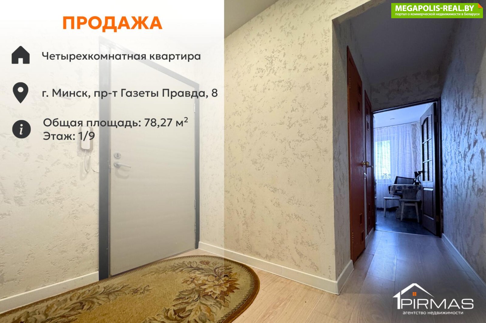 ✅ Просторная четырёхкомнатная квартира общей площадью 78,27 кв.м расположена в Московском районе г. Минска по адресу пр. Газеты Правда, 8. Это вариант для тех, кто ценит удобство города, развитую инфраструктуру и выгодное месторасположение, где всё необходимое для жизни находится рядом и в пешей доступности. Квартира светлая, с ориентацией окон на две стороны и высоким первым этажом, что делает проживание комфортным и практичным.