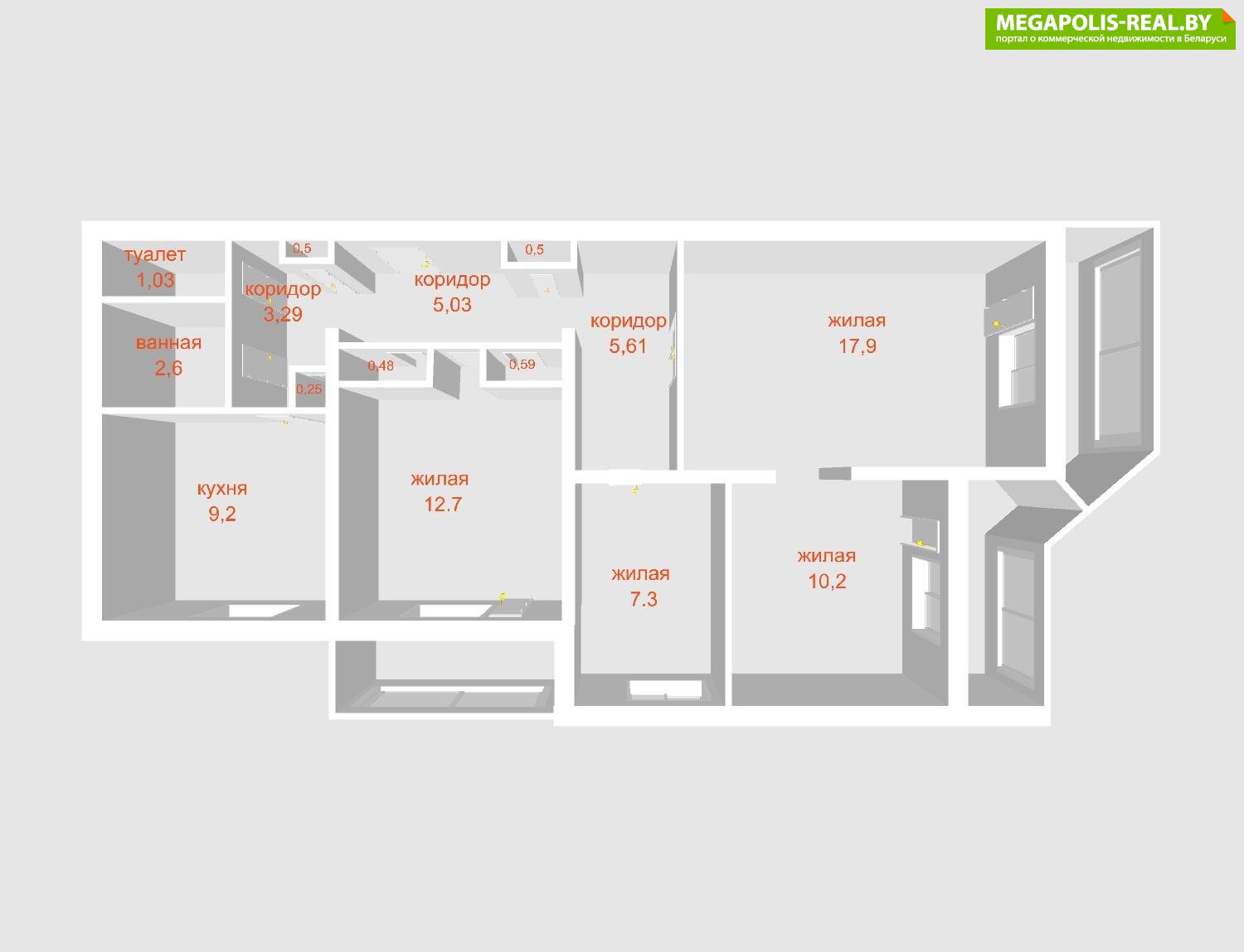 - Количество комнат: четырехкомнатная