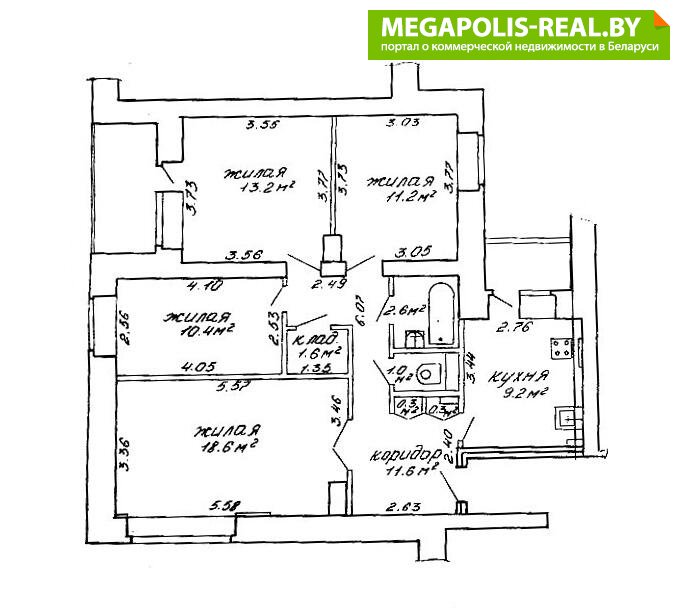 - Количество комнат: четырехкомнатная