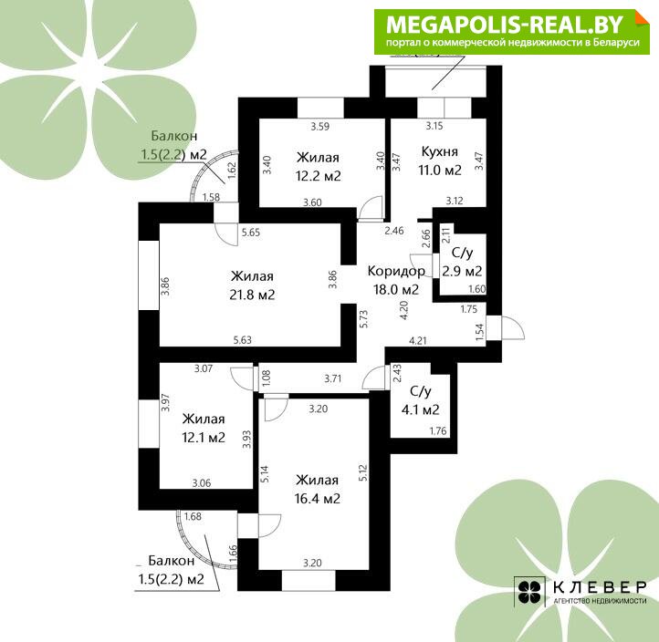 - Количество комнат: четырехкомнатная