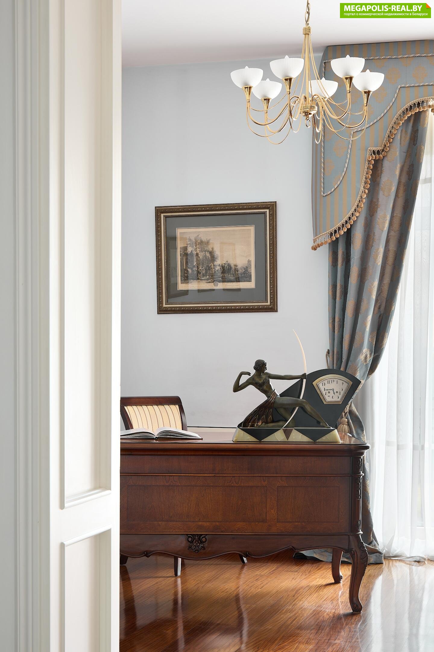 Квартира в классическом исполнении с камином на дровах. Интерьер собран со всего мира, все предметы штучные и лимитированные, в том числе антиквариат.