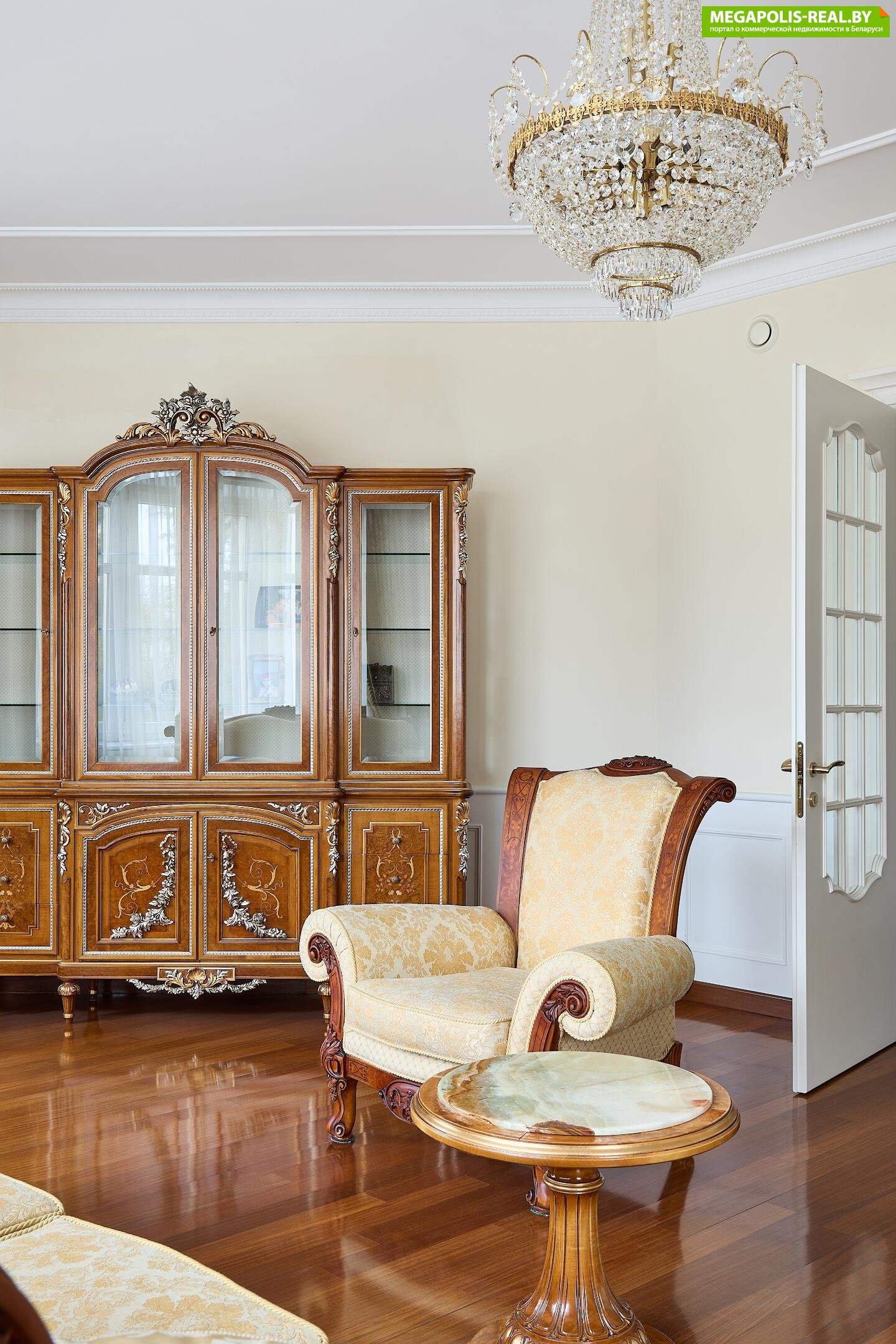 Итальянская мебель Carpanetti с инкрустацией. Хрустальные люстры, мраморные полы дополняют общую картину роскоши и уюта.