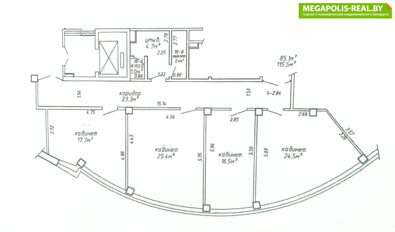 Офисный блок площадью 115,5 м2 находятся на 4-м этаже Бизнес-центра, по адресу ул. Маяковского 144.