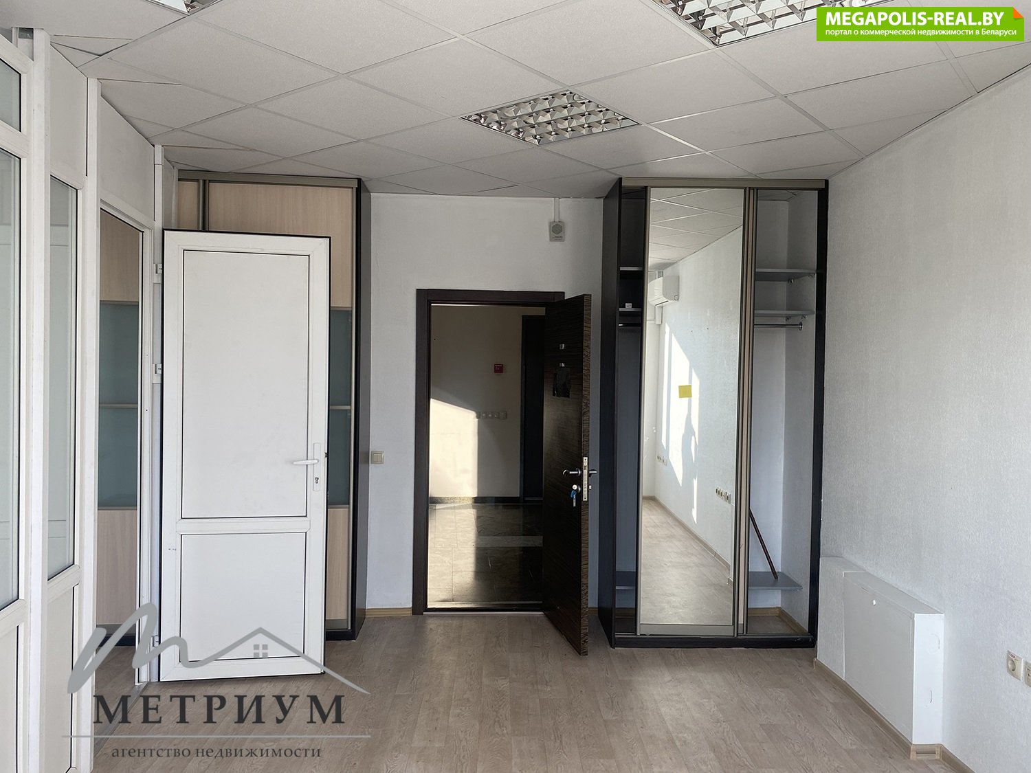 - Помещение разделено перегородкой на два кабинета — удобно для работы от двух сотрудников до небольших команд