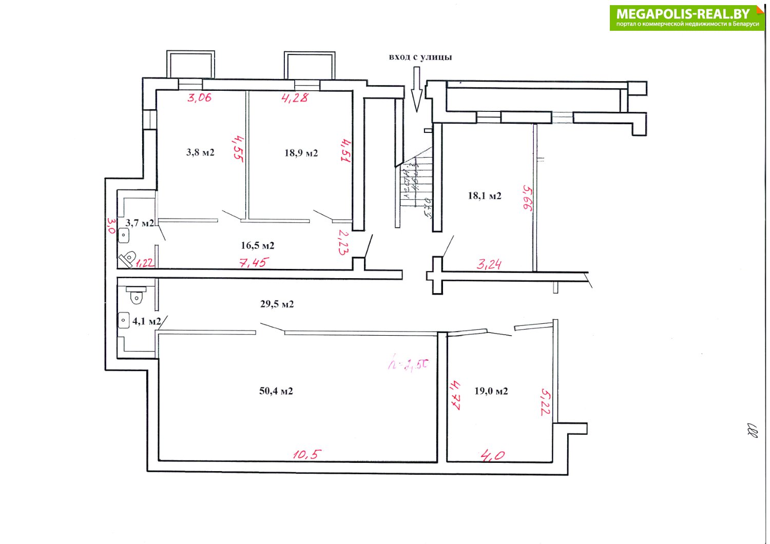 - 19,0 м2 - отдельный кабинет 19,0 м2 нет окон – есть вывод холодной и горячей воды и канализации.