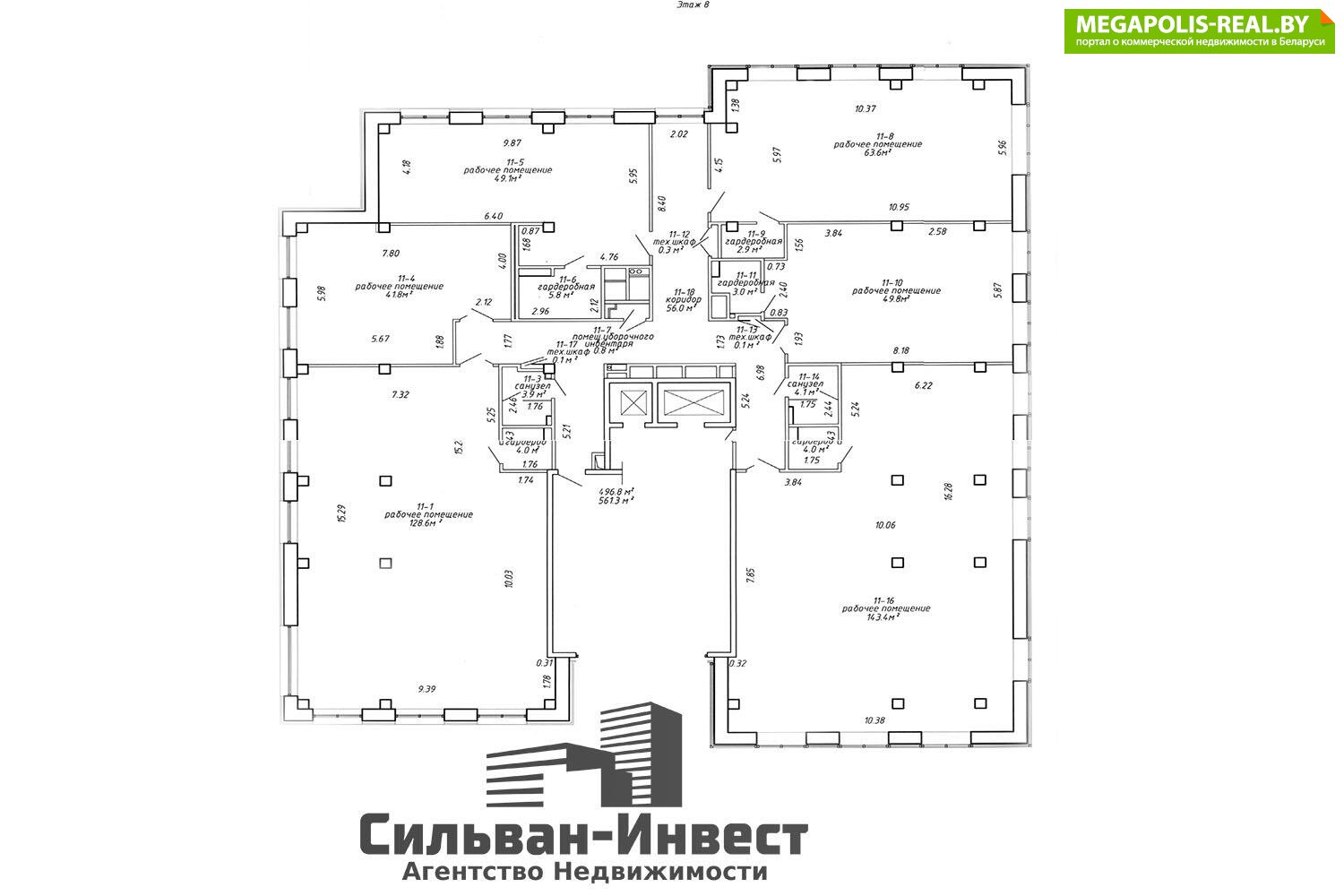 - Помещения с различными метражами на 7-м и 8-м этажах.