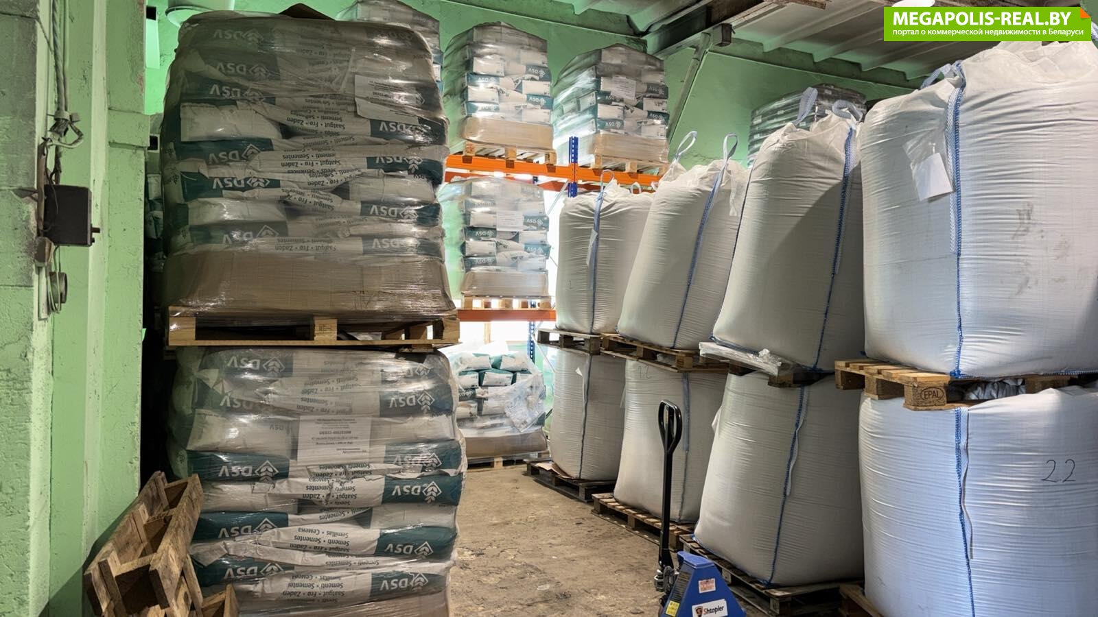 Наличие стеллажной системы – есть (3 яруса, хранение в 4 яруса)