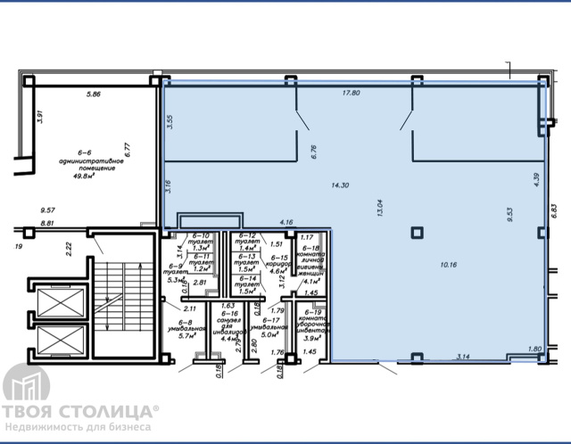 Помещение 78.4 м2 на 7 этаже. С отделкой, свой с/у.